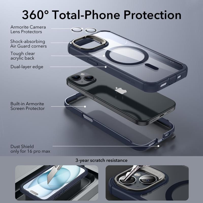 Dangerous Goods Or Hazardous MaterialsNoPatternPlainWarranty TypeNo Warranty📱for iPhone 16/15/14/13 CaseProtect Your Device SafelyThis full-body shockproof case is designed for MagSafe, offering military-grade protection. It includes a magnetic phone case with a shock armor kickstand. The HaloLock accessories protector ensures your phone stays safe. If screen sensitivity is affected, clean your phone screen and re-install the case properly.Easy Installation StepsFollow these steps for a secure fit:·Clean the screen with provided wipes.·Remove the screen protector and align it.·Insert the phone bottom first, then top, pressing edges for a snug fit.Separate Front Screen GuardGently open from the bottom right corner, then open the remaining three corners to detach the front screen guard from the back cover.360° Total-Phone ProtectionHard acrylic back case with shock-absorbing Air-Guard corners. Integrated screen guard and tempered-glass protector offer military-grade protection. A camera lens protector adds extra security.Adjustable KickstandThe kickstand is fully adjustable between 15° and 85°. It ensures the perfect angle for watching shows. The strong magnetic lock has 1,500 g of holding force for secure HaloLock or MagSafe accessories.Built to LastPremium zinc-alloy kickstand stays new for longer. The lab-tested hinge retains strength after over 3,000 uses.