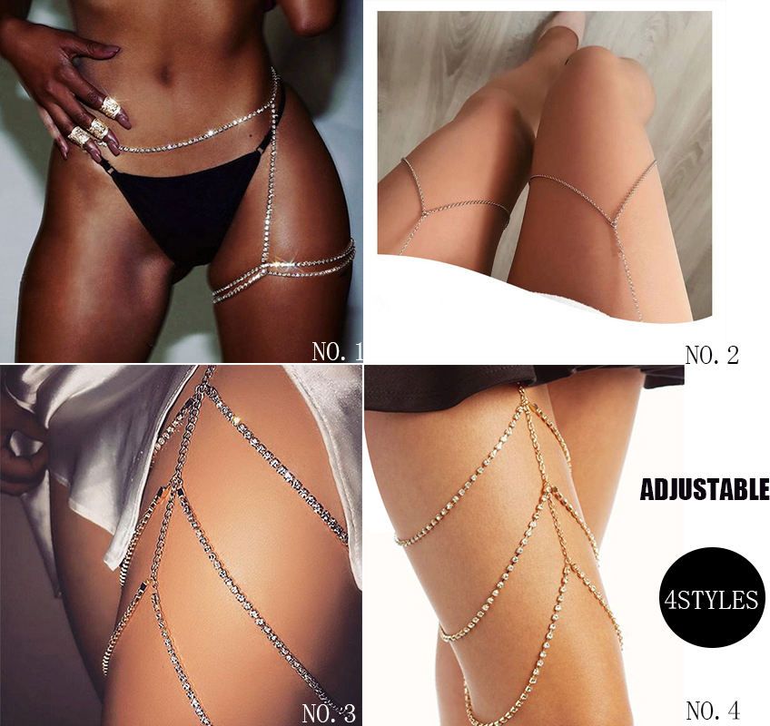 Feature highlights:This Crystal Thigh Chain is crafted from high-quality alloy and features a multilayer design with sparkling crystal and rhinestone inlays, perfect for trendy summer beach looks. The gold or silver plating ensures durability and a luxurious finish, while the claw setting enhances stone security. Ideal for engagements, weddings, anniversaries, and gifting, this body jewelry combines environmental-friendly materials with geometric patterns for a fashionable and professional design.