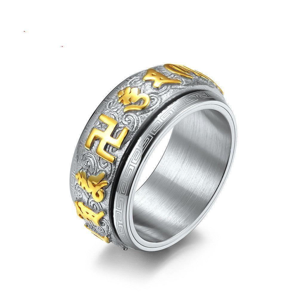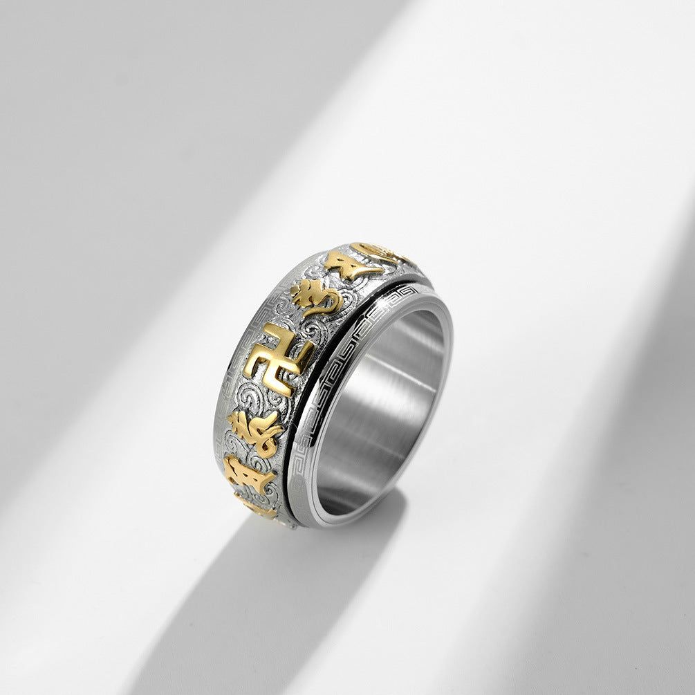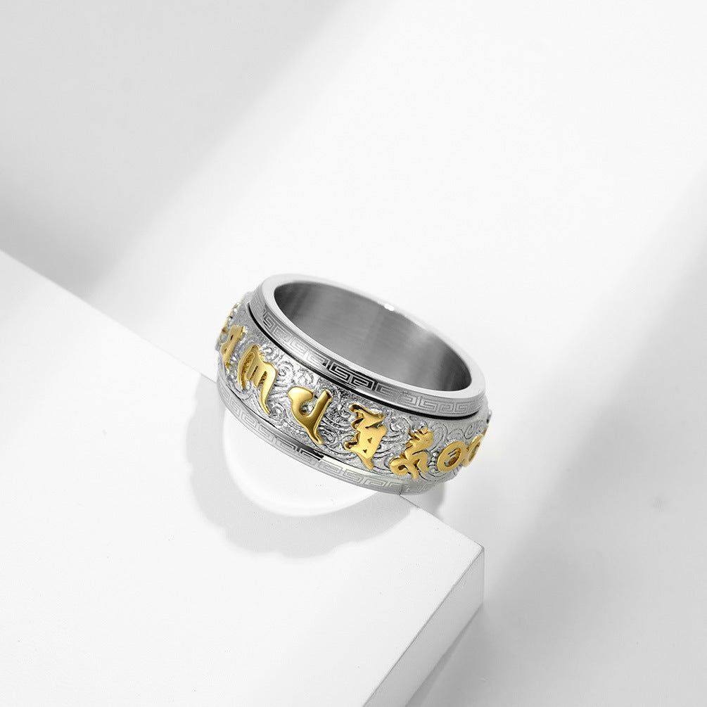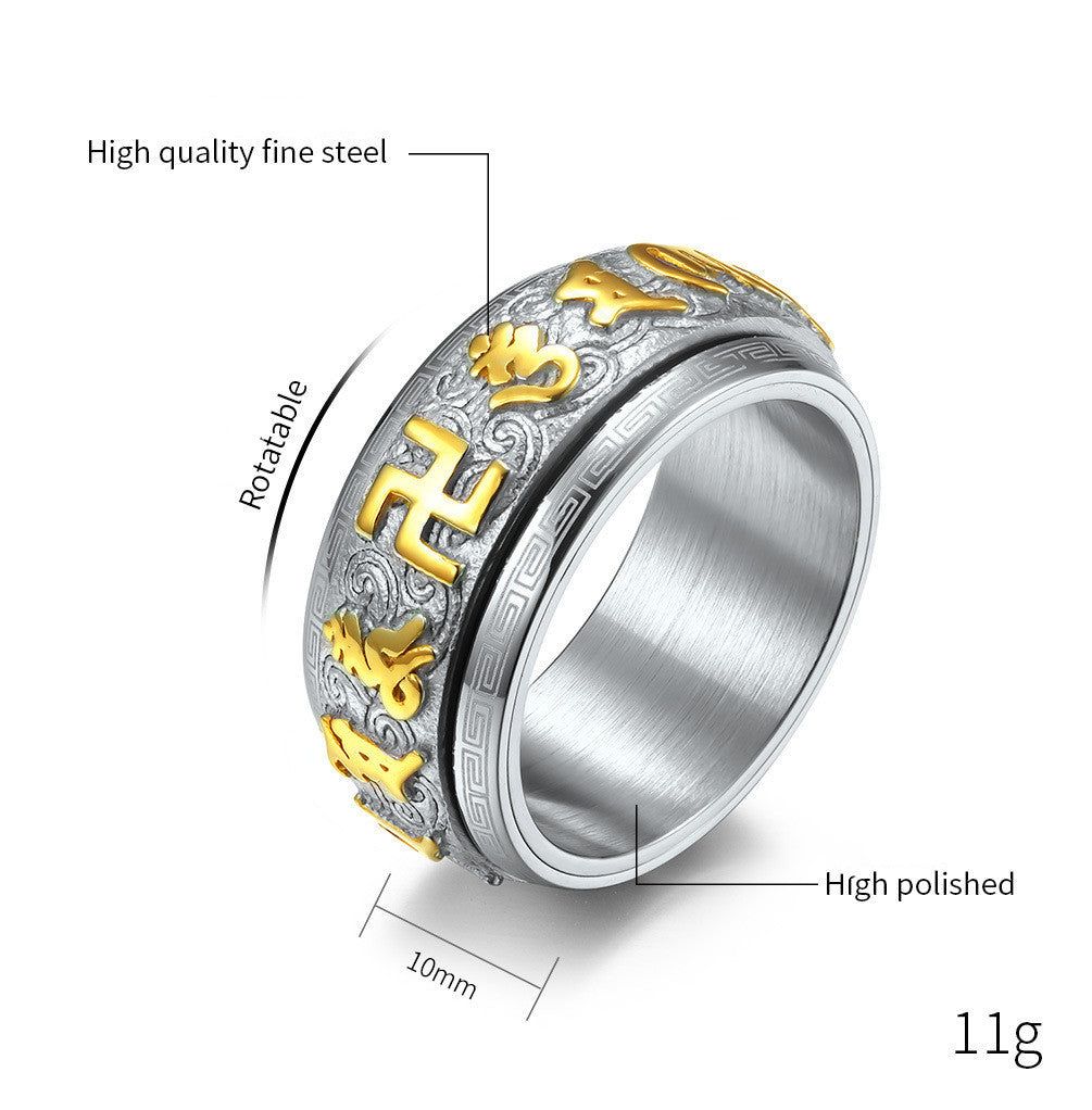 Mantra Ring Huiwen Guochao Buddhist Stainless Steel Jewelry