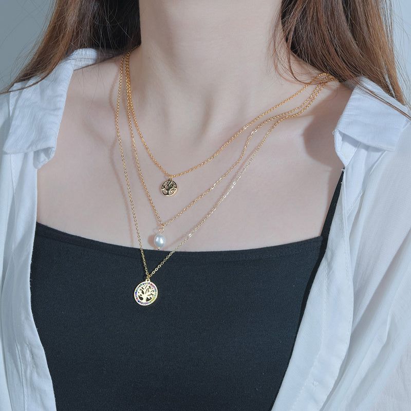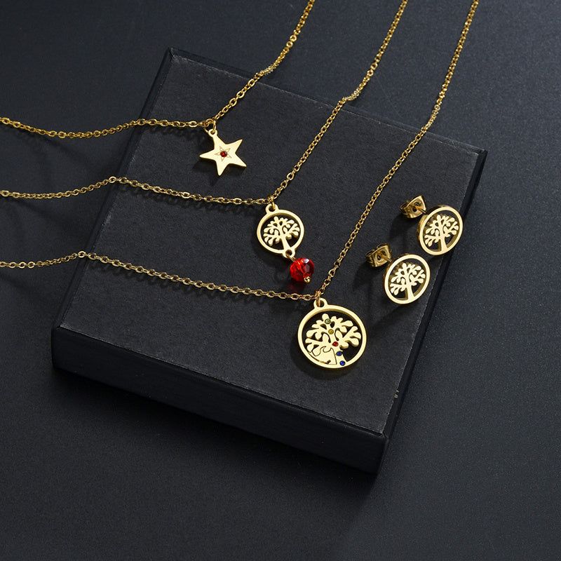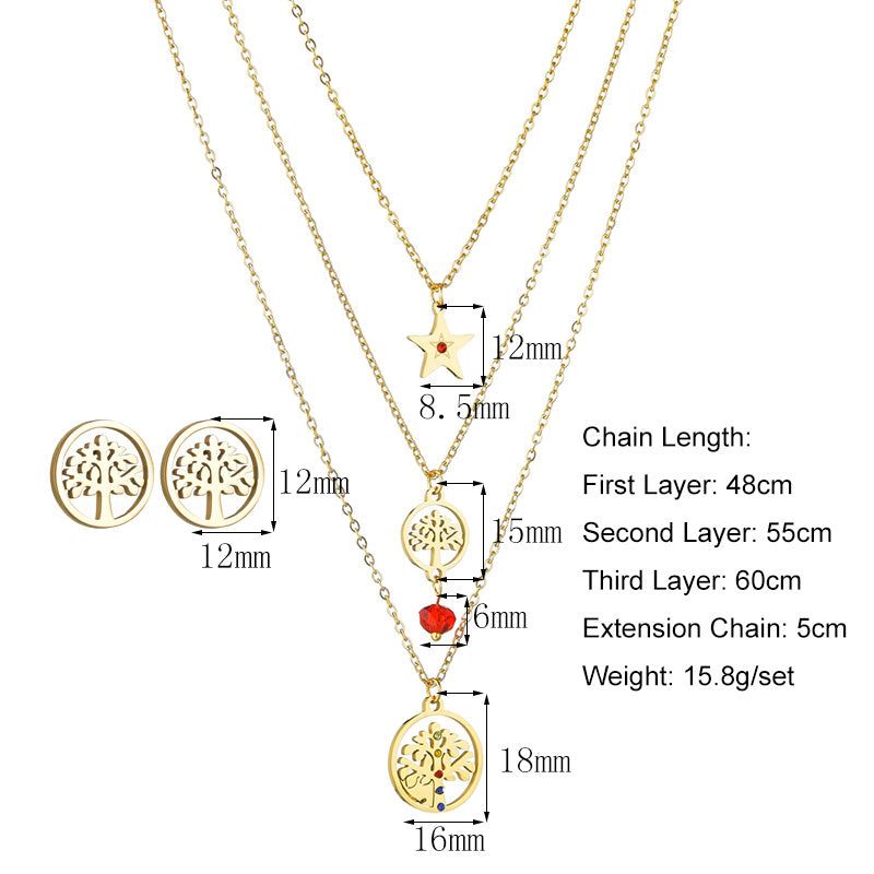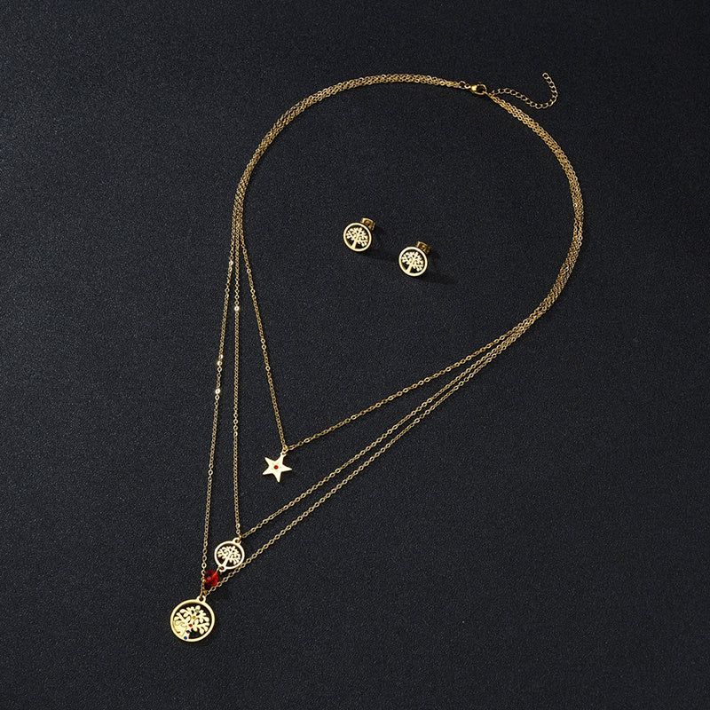 Multi-layered Titanium Steel Tree Of Life Star Necklace And Earrings Set