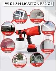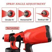 * Efficient Working: The spray gun is capable of producing a high-pressure spray that can be used to quickly and effectively cover large areas. Spray evenly and can paint a smoother & more superior surface than other paint tools. * 3 Spray Patterns: The paint sprayer can be adjusted to 3 different spray patterns, horizontal, vertical, and circular, suitable for any painting projects, such as furniture, cars, fences, interior walls, garage doors, garden tables, chairs, etc. * High-Quality Materials: The copper nozzles can withstand pressure more than plastic nozzles, and is less prone to clogging. It can also make the spraying surface more concentrated and more uniform. The use of insulation materials allows you to avoid worrying about any safety issues during operation. * Widely Used: The paint output can be controlled by adjusting the flow control knob which is suitable for different projects and can spray where the roller can't reach. * Portable: It is lightweight and easy to carry. The ergonomic design provides a comfortable grip and makes it easy to use. Detachable design, making it easier to use and clean. FEATURES