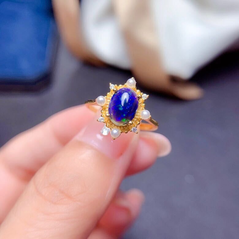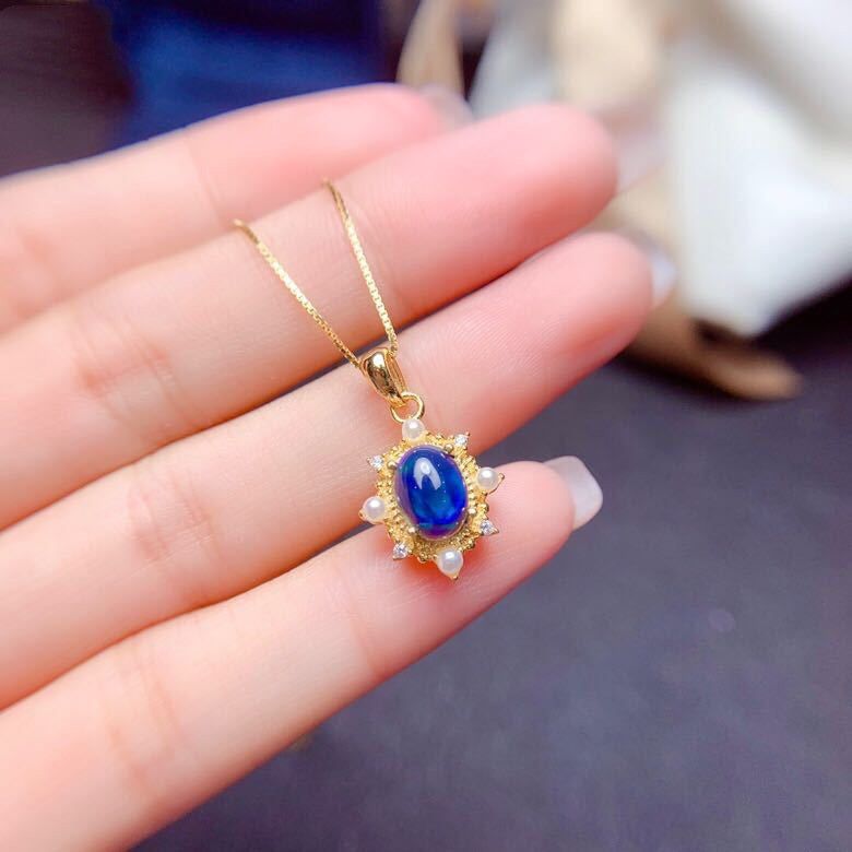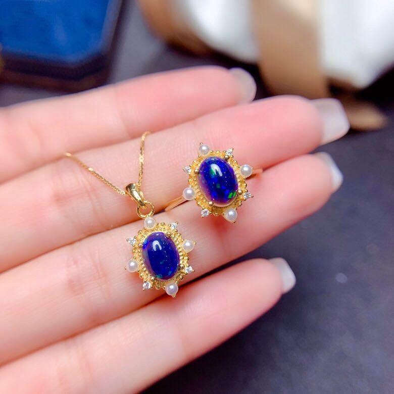Silver Inlaid Blue Opal Ring Pendant Set
